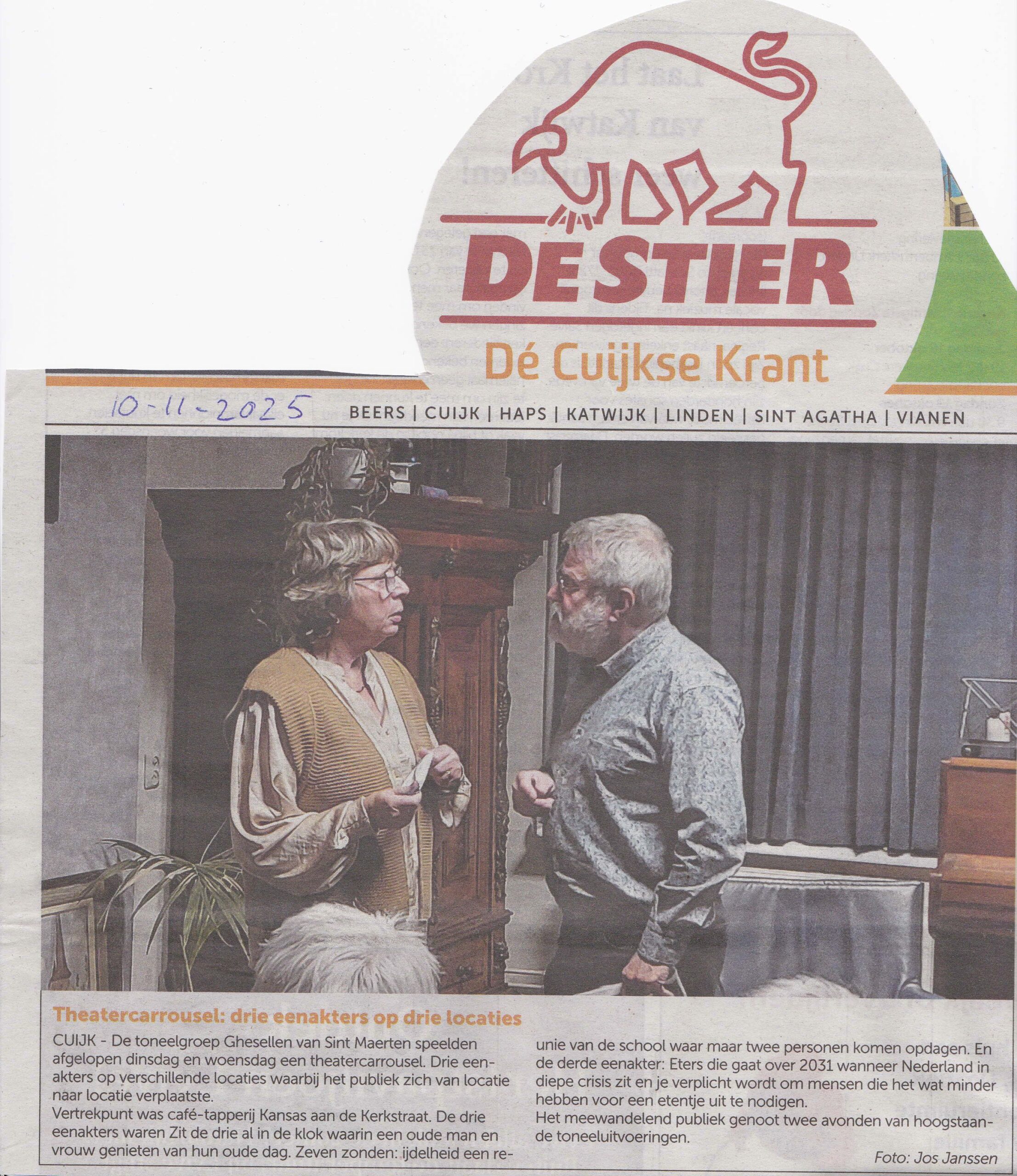 Na de succesvolle voorstellingen van de Theatercarrousel en Familie gaan de Ghesellen verder met het repeteren voor een nieuw avondvullend toneelstuk in het voorjaar van 2026.