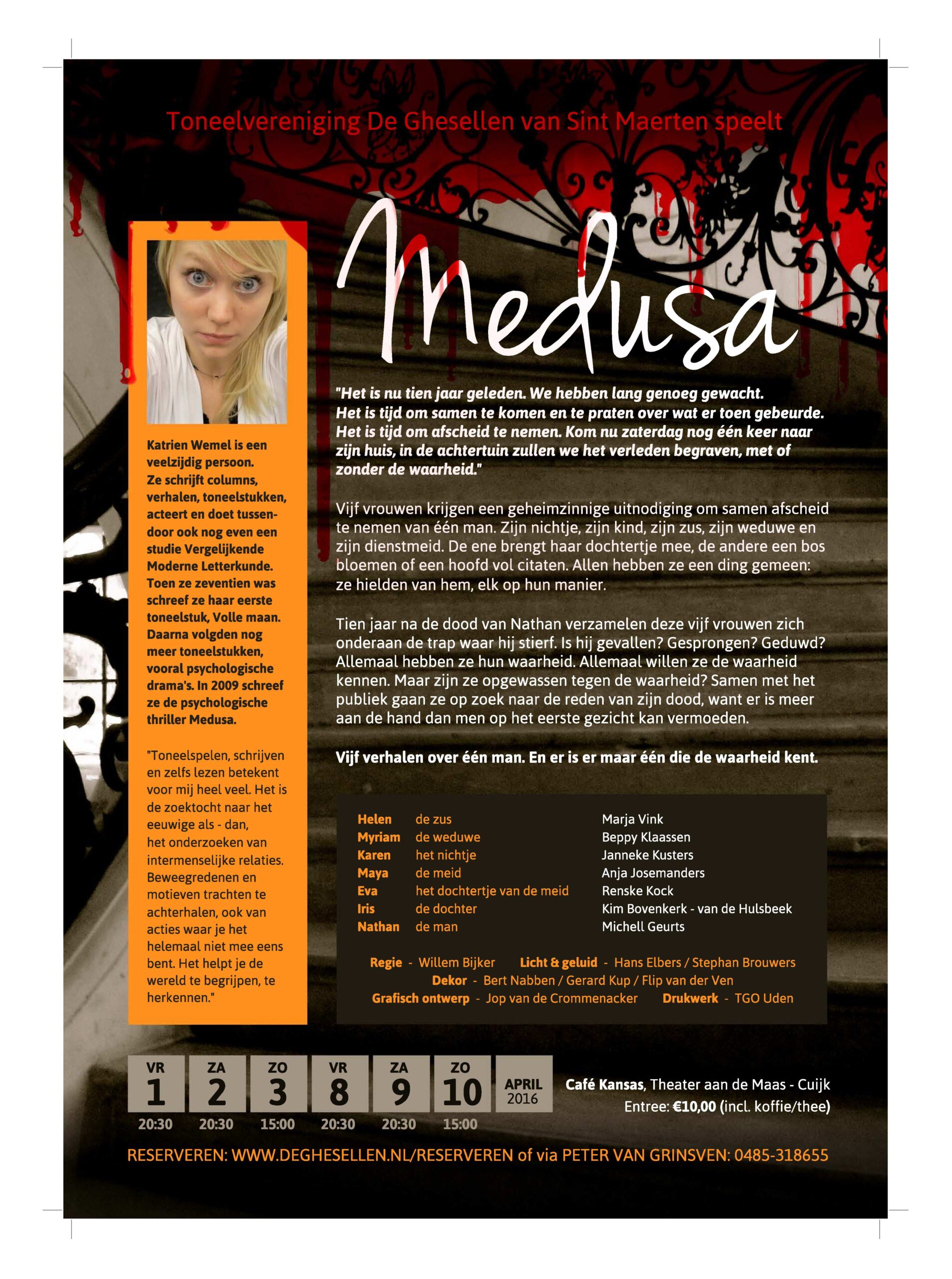 ‘Medusa’ een stuk van Katrien Wemel. Gespeeld onder regie van Willem Bijker.